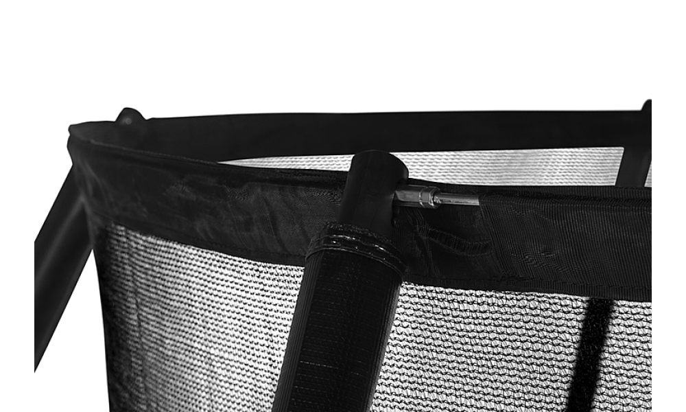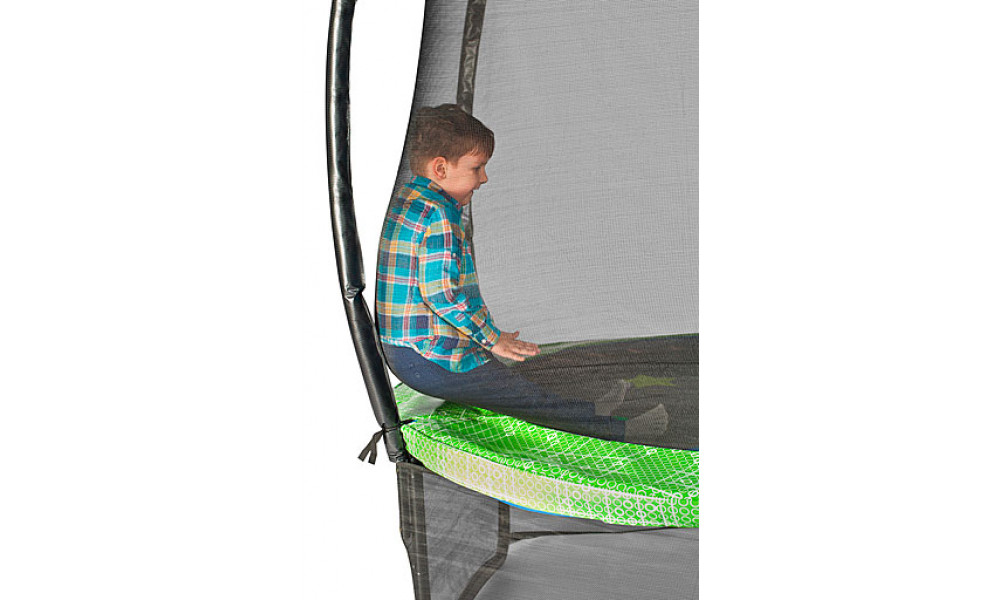 Безопасность. Благодаря инновационному, прямому, креплению защитной сети к прыжковому полотну, была достигнута максимальная защита от пружин при падении. Плетение настолько мало, что исключена любая возможность травмы, даже для самых маленьких пользователей.