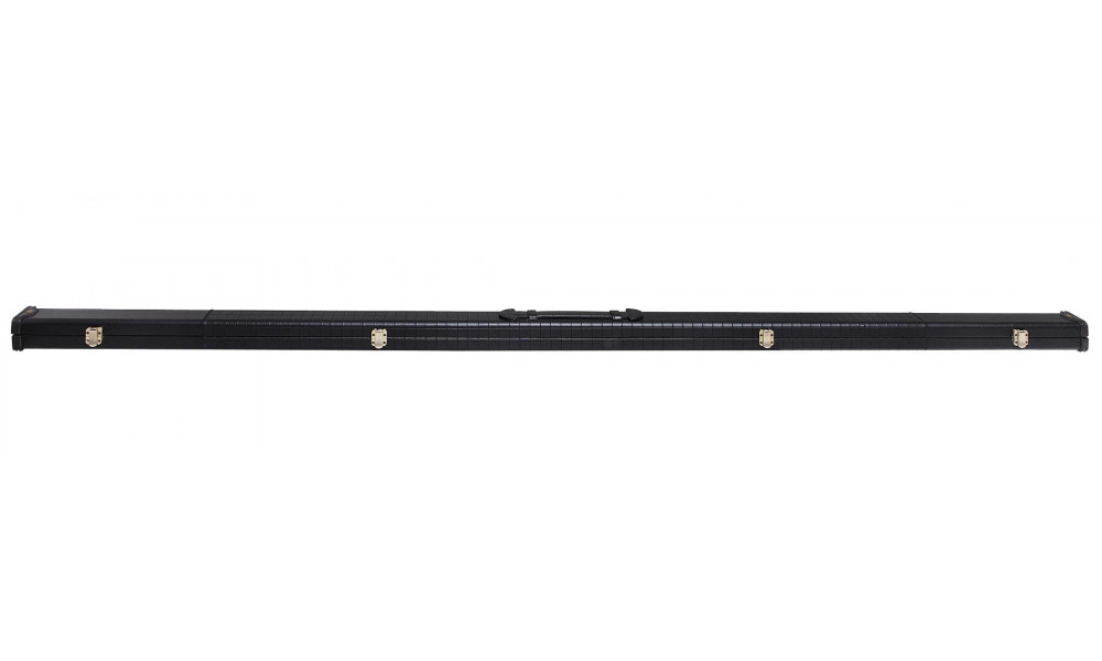 Кейс изготовлен из МДФ, современного прочного и износостойкого материала, наружные поверхности которого обтянуты черным винилом, защищающим от грязи, дождя и снега. Внутренняя поверхность кейса покрыта мягкой тканью темных и светлых тонов, которая выполняет для кия амортизирующие функции при транспортировке кейса.